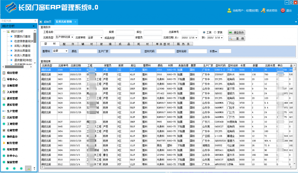 長風門窗ERP系統功能模塊